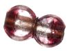 Round cushion shaped silver lined bicoloured glass disc in lilac and silver.