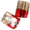 Red and grey bicoloured rectangular glass bead with a silver lining.