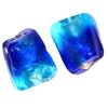 Bicoloured dark blue and turquoise twisted rectangular glass bead with a silver lining. Hand made in India these beads are approximately 15x12mm in size. The hole runs along the length of the bead and will take a 1mm thread.