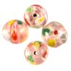 14mm round bead with a pink core decorated with dots and a swirled stripe. Approx 25 beads per string.