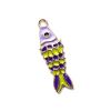 Super funky lilac and lime green enamelled fish charm, 26mm long by 8mm wide
