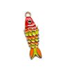 Super funky red, orange and lime green enamelled fish charm, 26mm long by 8mm wide