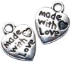 10x12mm metal heart shaped charm decorated on both sides with a small heart and 'made with love'.
