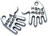 12mm metal hand shaped charm decorated with 'hand made' on both sides.