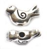 15x8mm silver metal birdie bead with the threading hole running through the height of the bead. The hole in the bead is relatively generous at just over 1mm in diameter. Cast metal bead. Made in China.
