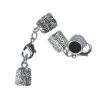 A pair of 15 x 10mm bell caps with an attached 15mm lobster clasp.  Bell caps have a textured bark-like surface and  an 8mm socket for a cord or similar to be glued into the cavity.
