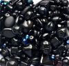 Mixed 100g bag of black pressed glass beads - most beads are between 4mm and 10mm in diameter, with a few in each pack up to 20mm in size.