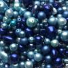 Mixed 100g bag of pearl finish pressed glass beads in shades of blue - most beads are up to 12mm in diameter, possibly with a few larger ones in each pack.