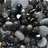 Mixed 100g bag of pressed glass beads in shades of grey - most beads are up to 10mm in diameter, possibly with a few larger ones in each pack.