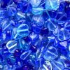 Pressed glass heart shaped beads in shades of blue - average sizes 6mm to 10mm in diameter.