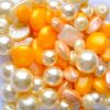 Mixed 100g bag of pearl and lustre finish pressed glass beads in shades of cream, peach, ivory and orange - most beads are up to 14mm in diameter, possibly with a few larger ones in each pack.