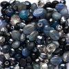Mixed 100g bag of pressed glass beads in shades of grey blues, greys and silver - most beads are up to 10mm in diameter, possibly with a few larger ones in each pack.