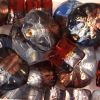 Mixed 100g bag of bi-colour glass beads in blue, purple and red.