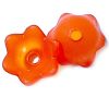 Plastic flower shaped bead approx 10mm in width and 8mm in height.  The threading hole is just over 1mm in diameter.  This beautiful bead can represent either a tulip, with the open side facing upwards, or a fuchsia, with the open side facing downwards.