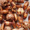 Tube of assorted wooden beads.  Approx 10g of beads in assorted shapes and sizes.  The photograph is of one pot of these beads, each pot will vary slightly.