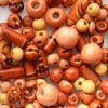 Tube of assorted wooden beads.  Approx 10g of beads in assorted shapes and sizes.  The photograph is of one pot of these beads, each pot will vary slightly.